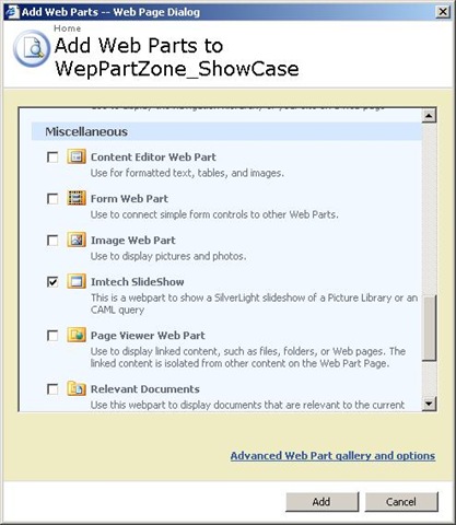 So without any further ado, I created a SharePoint WebPart that will show an entire Picture Library in the form of a SilverLight slideshow. The WebPart is mainly based on a project called Silverlight Slideshow initiated by Koen Zwikstra from Firstfloorsoftware.com All I had to do add a little functionality and wrap the whole package into an WSP.
